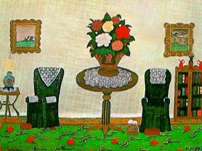 there was a gloomy picture in a heavy frame. I did not dare to touch anything in